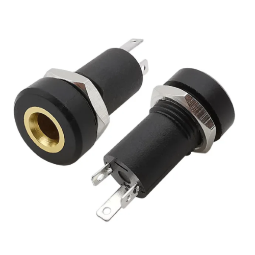 Presa jack stereo 3.5 mm dorata da pannello.Diametro foro pannello mm.7,7.