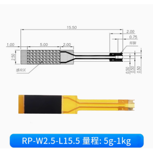 Questo microsensore varia il valore della sua resistenza in base alla forza applicata sulla sua area sensibile. Maggiore è la forza applicata minore è il valore della sua resistenza. Quando non viene applicata nessuna forza la resistenza è maggiore di 1 Mohm. Il sensore è sensibile a una forza da 5 grammi a 1 kg.