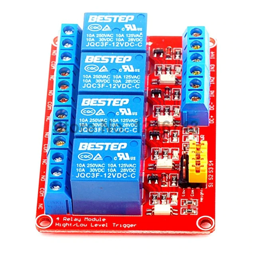 Modulo dotato di 4 relé che consente di attivare/disattivare il carico ad essi collegato (240V/10A max). Dispone di ingressi optoisolati e LED di stato con la possibilità di funzionamento con comando HIGH o LOW selezionabile tramite jumper;questa caratteristica lo rende versatile e adatto per molteplici usi, inoltre questo modulo è di ottima qualità adatto anche per usi professionali.