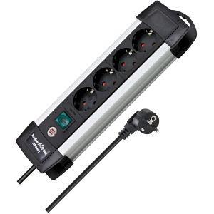 La serie di prese multiple Premium-Alu-Line 4 posti di Brennenstuhl nel colore argento/nero e con un cavo di 1.8 metri convince per la sua qualità e sicurezza in tutti i settori. È ideale per l'ufficio, l'industria, il commercio, l'uso privato intorno a PC, stampanti, modem, ecc. Non solo ha una maggiore protezione contro i contatti accidentali, ma convince anche per le seguenti caratteristiche: * Alloggiamento stabile e senza tempo in alluminio con superficie anodizzata opaca e insensibile * Stabilità extra robusta * Il cavo in eccesso rimane nel portacavo * Prese di contatto di protezione con disposizione a 45°, anche per spine angolate * Interruttore di sicurezza illuminato, a due poli on/off commutabile * Con dispositivo di sospensione
