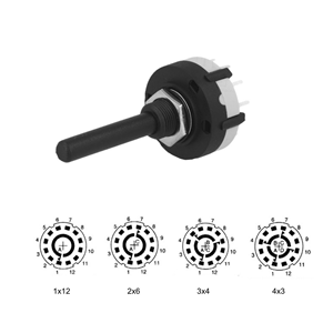 Commutatore rotativo ermetico,corpo in plastica, a 3 posizioni,4 vie.Portata contatti 0.3 Amp 125 VAC/1 Amp.30VDC.