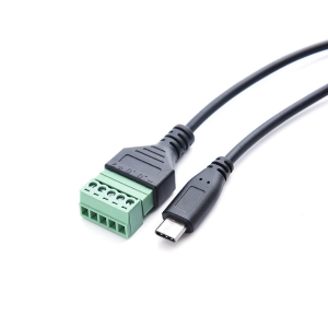 Cavo con connettore USB-C e morsettiera staccabile alle estremità,lunghezza circa 30 cm, colore nero, cavo flessibile diametro mm.4.