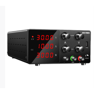 Compatto alimentatore da laboratorio di ottima qualità con uscita da 0-30 VDC,corrente 10 Amp.Regolazione separata della tensione e della corrente erogata.Provvisto di voltmetro, amperometro e wattmetro digitali a 4 digit per una maggiore risoluzione, una uscita USB 5VDC 2 Ampere e di protezione contro sovraccarico e cortocircuiti.Corredato di cavo di alimentazione e cavo di uscita.