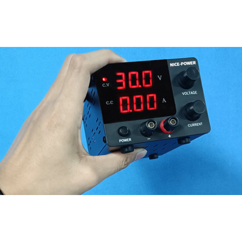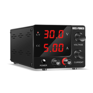 Compatto alimentatore da laboratorio a tecnologia switching che eroga tensioni tra 0-30 VDC, corrente 5 Ampere,potenza 150 Watt, dotato di voltmetro e amperometro digitale,uscite tramite morsetto serrafilo per banana 4 mm,fornito con cavo di alimentazione 220 VAC e cavo rosso/nero di connessione al circuito.