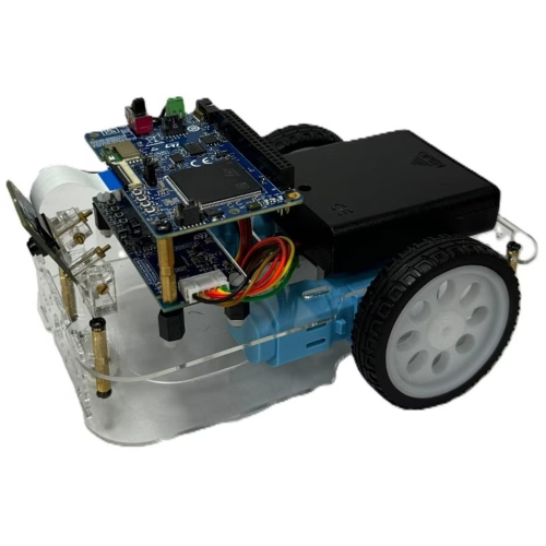 Un'unità di misurazione inerziale (IMU) e un magnetometro forniscono un rilevamento preciso dell'orientamento e del movimento per la navigazione e la stabilità in ambienti dinamici. Un modulo Bluetooth® Low Energy (BLE) facilita la comunicazione wireless, consentendo il controllo mediante un'interfaccia remota. È incluso un firmware dedicato che consente al robot di muoversi autonomamente e agli utenti di provare vari algoritmi di intelligenza artificiale.